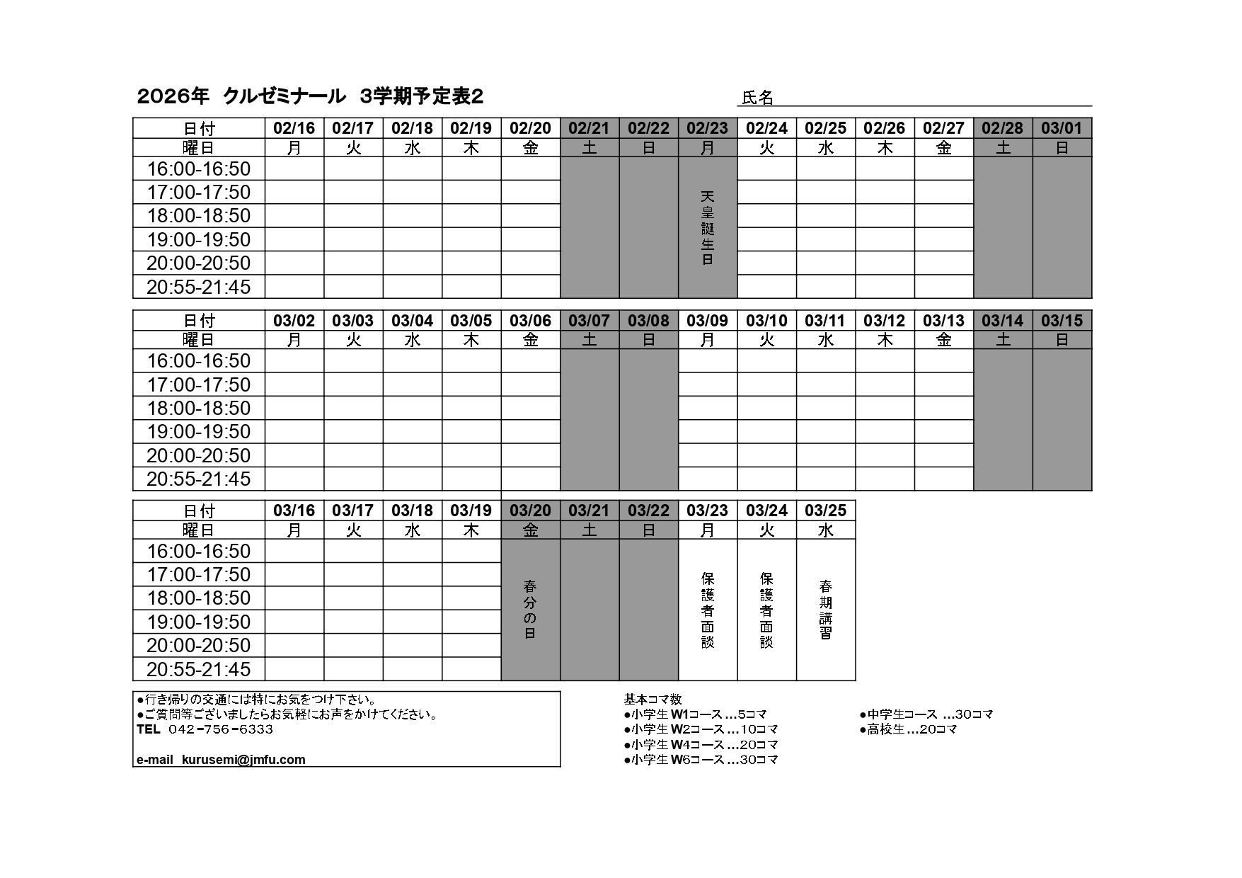 2026年3学期予定2