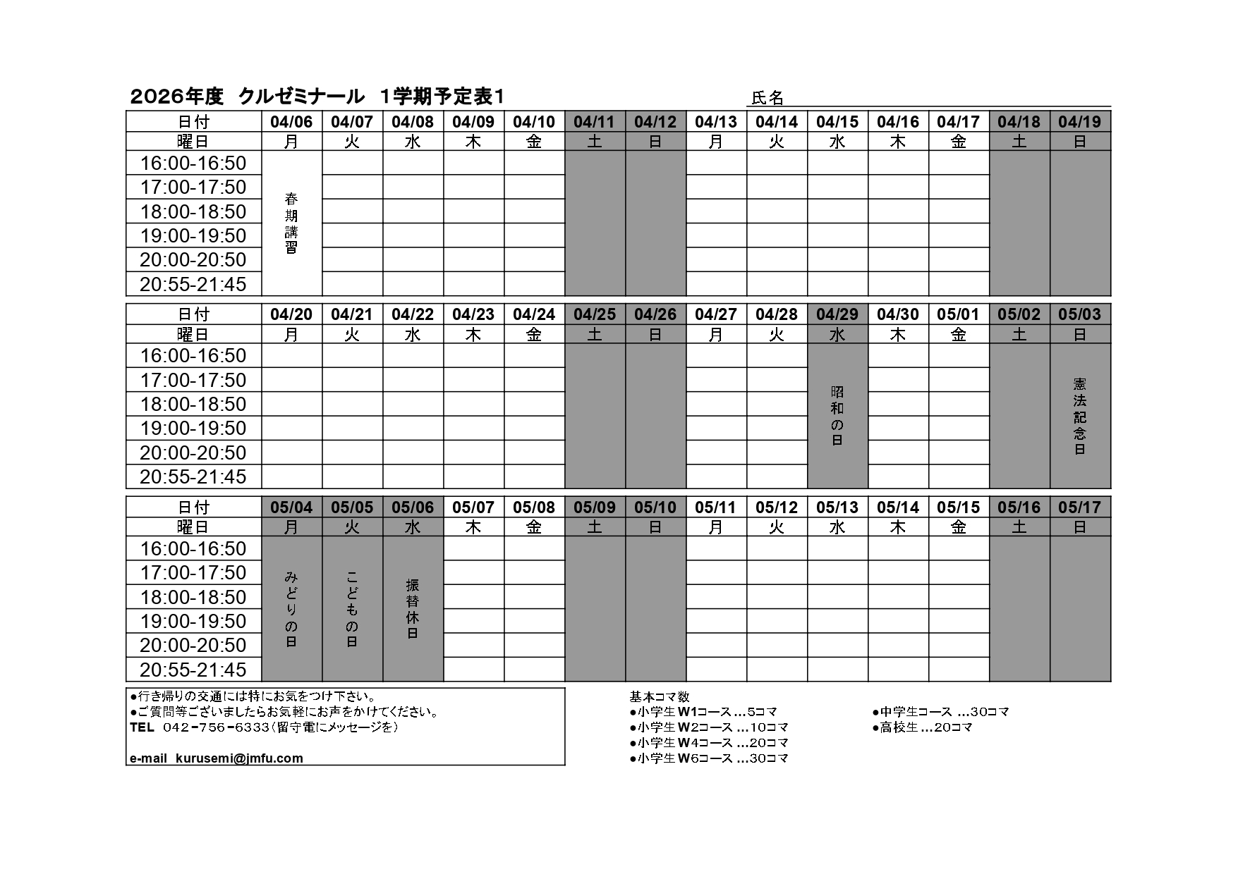 2026年1学期予定1